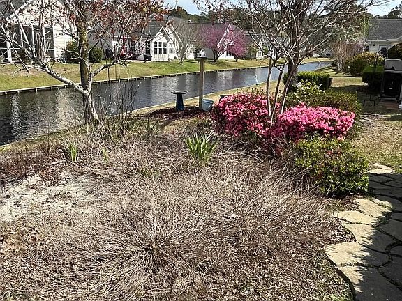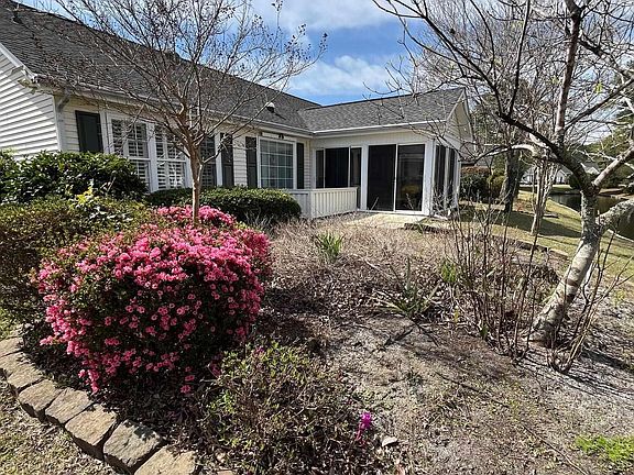 This charming 2 BR/2 BA home in the Myrtle Trace 55+ community is situated by a small channel of water. Nice view of the water channel from the sunroom. The kitchen features stainless steel appliances. Convenient eat-in kitchen. Home has been well maintained with upgrades. Spacious walk-in master shower. The Clubhouse hosts daily activities for the residents. There is also a resident swimming pool and bocce ball court. Location is convenient to everything including a hospital.