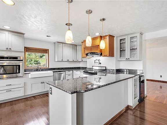 Wait till you go inside! "WOW" is what you will say!Chef's kitchen w/ ALL THE BELLS & WHISTLES-farmhouse sink,pendant lighting, recessed lighting, elegant granite counters, gorgeous dove tailed grey cabinetry made by Schuler w/special cabinets such as spice drawers, lazy Susan,some glass doors, pull out shelving,trash drawer,eating area, & more!Appliances include - Kitchen Aid range w/oven, Kitchen Aid refrigerator, Kenmore wall oven, Sharp pull out microwave drawer, dishwasher, pot filler above range, beverage fridge*Dining room walk out onto the side deck w/Gazebo for entertaining*Family room w/access to rear yard*Main floor laundry*Main floor bath w/double jetted tub*Owner's suite w/cathedral ceiling, loft area, enormous closet, full bath w/tiled walk-in shower, & newer vanity w/granite*2 additional bedrooms on the 2nd floor*AMAZING Garage/workspaces- feature heat & electric. Oversized 2 car garage is 23'x22', 2nd garage/workshop is 32'x13', Motor home carport is approx 40' x 21'