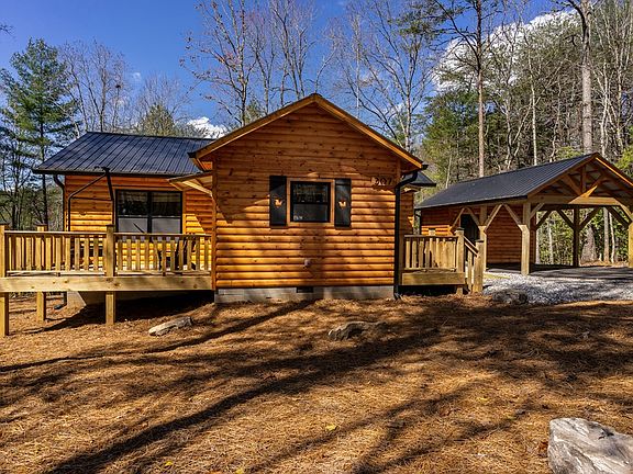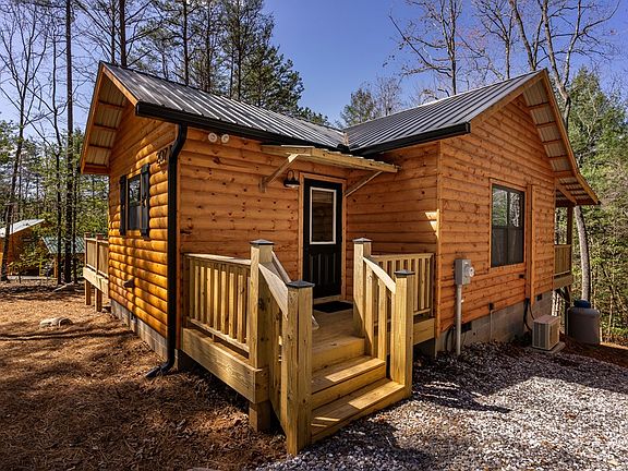 Nestled among a dense canopy of towering pines, this cozy 1-bedroom, 1-bath cabin offers a serene retreat from the hustle and bustle of everyday life. Tucked away on the edge of a tranquil forest, the cabin welcomes visitors with its rustic charm and natural beauty. Stepping inside, you find yourself enveloped in warmth and coziness. The interior is adorned with knotty pine walls and floors, giving the space a rustic yet inviting ambiance. A comfortable living area beckons with a plush sofa nestled beside a stone fireplace, the perfect spot to unwind after a day of exploration in the woods.