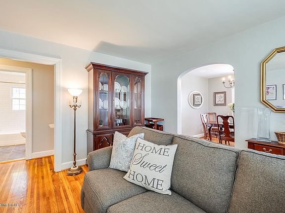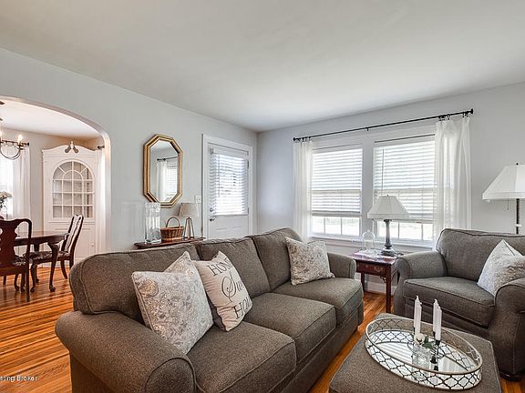Live the true St. Matthews lifestyle here! Charming black shutters greet you on the outside of this two bedroom, one bathroom home. Bright, cheerful natural light shines through the many windows. Upon entering into the living room, you'll find gray walls, white trim, and hardwood flooring that give the home the move-in ready look that many current home shoppers are searching for. St. Matthews homes are often desired for the original character they exude. The large arched doorway between the living and dining room is just one such characteristic. In the dedicated dining room (a rare and desirable find in St. Matthews) a trendy chandelier hangs over the table. The kitchen offers white cabinets with modern hardware pulls. A full bathroom, accessible from the hallway, is utilized by the adjacent two bedrooms. The bathroom has undergone a complete renovation including new drywall, paint, restored cast iron tub, new vanity, light fixtures, medicine cabinet, and subway tile shower walls. Both bedrooms offer neutral walls and hardwood flooring to suit the taste of anyone. A true southerner's porch is located just off the kitchen. It boasts a beautiful blue ceiling, white painted wall panelling, and three walls of windows overlooking the lush rear yard. This completely enclosed three seasons room walks out to a large, flat backyard with abundant flowering trees and shrubs that is enclosed with a white picket fence. Enjoy the use of a detached garage, another coveted, yet scarcely found feature for the area. The lower level has been waterproofed and you'll adore the way the current owners maximize the use of the space. Laundry access, along with generous amounts of storage space, are available in the unfinished lower level. All of this, within a mile from 5 different groceries, nearby shopping malls, the various locally owned shops and eateries offered in Chenoweth Square and the Vogue, as well as many other area attractions.