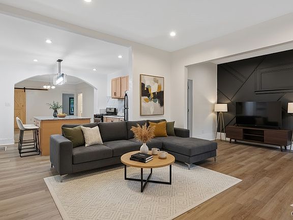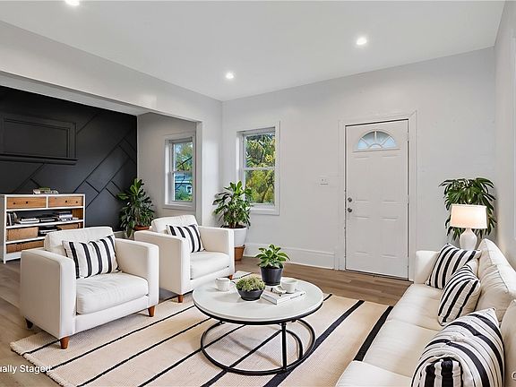 This beautifully updated bungalow offers a bright and functional floor plan. The home welcomes you directly into a comfortable living room that opens to a stylish kitchen, with the dining room situated just beyond for a smooth and natural flow through the main living spaces. Off the living room is an additional flex space featuring a decorative accent wall — perfect for a home office, cozy reading nook, or play area.