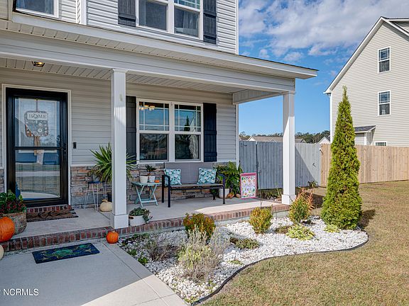 This 3 bedroom, 2 1/2 bath home is located in the desirable subdivision of Bridgeport, between Jacksonville and Wilmington, and just minutes to the beach. Situated on a corner lot with side entry garage, covered porch and stone accents, this home has instant curb appeal. Upon entering, the foyer welcomes you where you will find the formal dining room to the right. The kitchen is open to the living area, complete with an electric fireplace, perfect for those cool Carolina fall nights. The first floor also includes a half bath. Continue upstairs to find the master bedroom which has a recessed ceiling and an ensuite bathroom with dual vanities, garden tub, separate shower and walk in closet. Don't miss the bonus room area located through the master closet, perfect for a craft room, office, or extra storage! Two other bedrooms, laundry room and full bathroom are also upstairs. Other notable features include kitchen gas stove and water heater, fresh paint, and fully fenced in backyard with two hammock stands, electrical ready wired shed and pergola. Schedule your showing today and fall in love! *Sellers offering $3,000 buyer credit*
