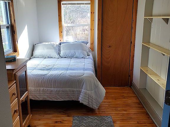 Completely remodeled in 2022. Refinished hardwood maple floors, Kitchen and Bathroom remodel. Many, many enhancements, all new paint, and hardware. Satin Nickel knobs, door handles. Rooms with new LED lighting slide dimmer light control. Bathroom shower with full tub completely remodeled. Comes mostly furnished with new beds (full and queen), stove, small fridge, microwave, pots, pans, dishes, etc. New carpet in smaller bedroom, all other rooms are hardwood floors. New porch deck, large beautiful 1 acre yard with 2 apple trees and located in a quiet neighborhood. Some windows were replaced in 2022 as well. Has basement with gas furnace, washer and dryer hookups, storage areas, and washtub.