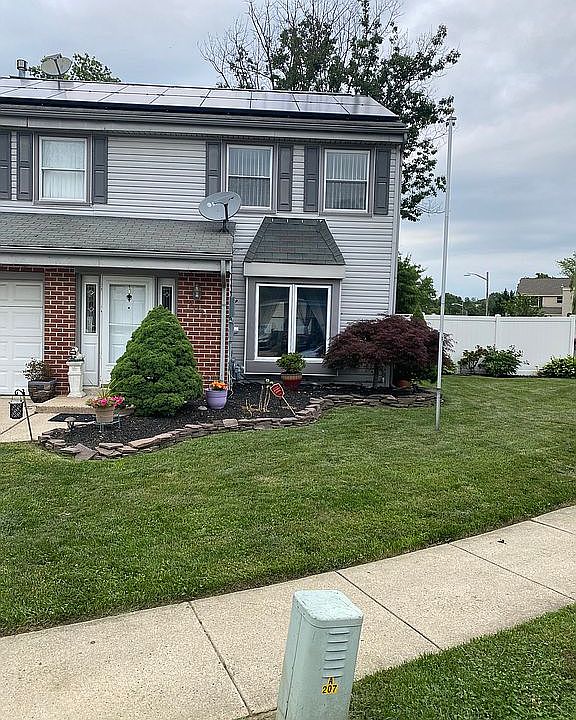 Come see this well maintained end unit townhouse on a generous sized corner lot. This home offers 4 large bedrooms, 2 and 1/2 bath . PLUS NO ASSOCIATION FEES!!! This end unit townhome offers a spacious backyard with a deck, storage shed and fully fence vinyl backyard. Partially converted garage to office/flex space and powder room on the main level. This also have newer ac and heating unit plus solar panels that provide plenty of savings on your electric bill!. This is a very desirable, location accessible to major roads and highways, as well close to shopping centers, restaurants, and the Moorestown Mall. The property is being sold by owner in "AS IS" condition, owner will do no repairs.