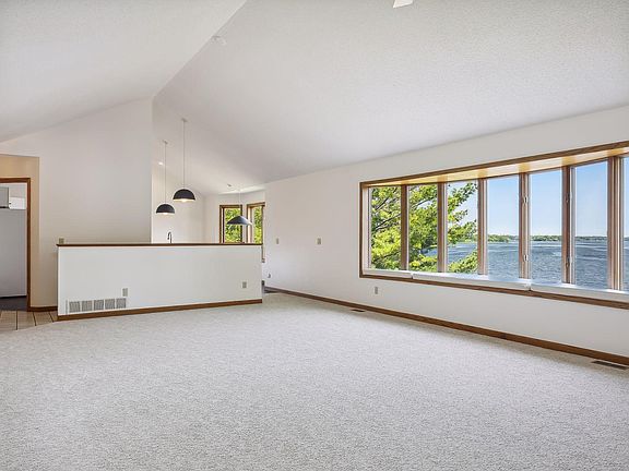 Wonderful rambler with expansive views overlooking the lake, vaulted main level great room with fireplace, new paint, carpet and ready for move in. Walkout lower level with finished family room, full bath and non conforming bedroom. Lower level garage space for the boat and water toys.