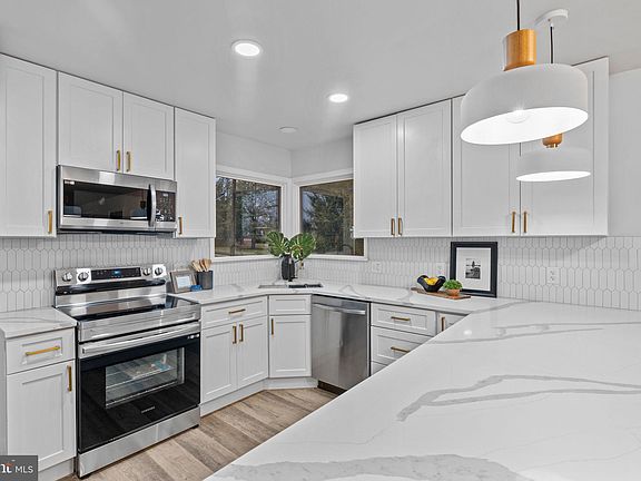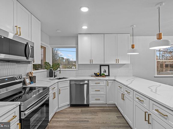 This home has been meticulously renovated from top to bottom and features 2 Bedrooms, 2 Full Bathrooms , NEW Kitchen w/Quartz Counter Tops, Stainless Steel Appliances and Breakfast Bar , Open Floor Plan for Entertaining , Living Room with a Wood Burning Fireplace , Finished Lower Level , Detached Garage , First Floor Laundry , ALL NEW windows , NEW Plumbing , NEW 200amp Panel and NEW HVAC . The seller has taken special time and attention to add details like recessed lights w/ a night light feature * FLIP the switches 2x on your tour * Primary Bathroom Backlit LED Mirror has an "Anti Fog" setting to help with those hectic mornings ! This home is ELIGIBLE for USDA/NO DOWNPAYMENT Financing .