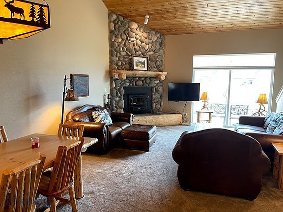 This great new offering in Big Sky, Montana is just in time for the beautiful fall hiking, golf, fishing, and biking weather! Orginal owner, never been rented, this Firelight Chalet has a great open floor plan, along with a stone wood burning fireplace insert for snuggling up with a good book on cooler Montana evenings. The kitchen opens up to the spacious living area with views of the open space behing the condo. All 3 bedrooms are generously sized and this unit has 3 full bathrooms. There is an attached single car garage, and the home is being sold fully furnished minus a handful of exceptions.