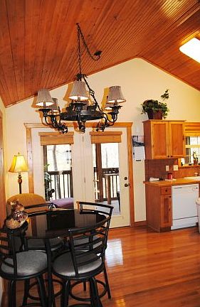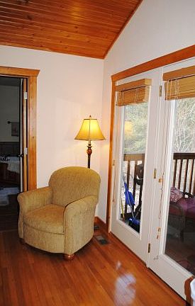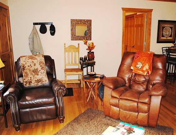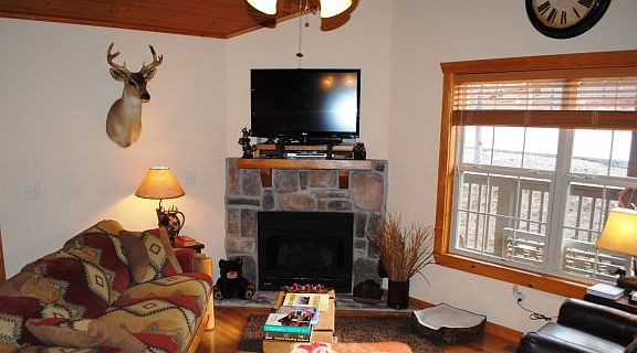 Enjoy the upgrades in this competitively priced beautiful two bedroom furnished lodge. Fantastic location backs up to woods and creek for serene privacy. Short stroll to pool, paved walking trail, playground, and pavilion. Community amenities also include golf, tennis, clubhouse, gated entry. Two master suites and living room include flat screen TV's. Two leather recliners, larger fridge, custom door, upgraded outdoor furniture, gutters. Some personal items do not stay. Room dimensions and measurements are approximate.