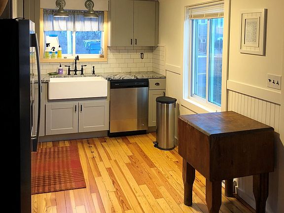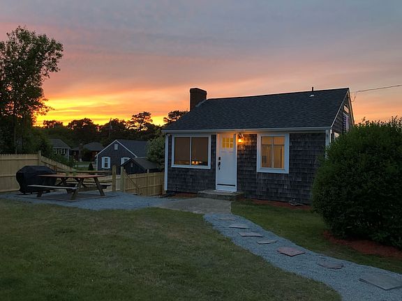 Cozy Cape Cod Cottage literally 100 steps from Glendon Road Beach with access to private beach on Old Wharf. The house has beautifully refinished antique pine floors throughout and freshly remodeled kitchen and baths! The kitchen adorns new stainless steel appliances, farmhouse sink, subway tile back splash, antique butcher block island, and various other elements of modern farmhouse decor. The living and dining room have subtle gray and white painted ship lap pine paneling. A flat screen 50" TV, wifi, cable TV, internet cable, and DVD player allow guests to stay connected while the large farmhouse table can seat up to 8 for a nice hearty meal. Additionally, there is two sets of outdoor patio furniture to enjoy a meal outside. There are two bedrooms, one upper level and one lower. Both tastefully decorated and remodeled. Memory foam queen beds, painted ship lap paneling, barn style closet door, and unique lighting allow for a comfortable nights sleep. The house has 2 freshly remodeled bathrooms, equipped with Toto Eco Friendly toilets, rainforest shower in the upper, antique clawfoot tub in the lower, both adorned with stenciled ceramic tile floors and subway tile shower surround. You walk down the stair case and enter the lower level to find another great room with pull out sleeper sofa and a twin over full bunk bed. There is a 2nd flat screen mounted over the mantle so the kids have a TV of their own on those occasional rainy days. The house has 4 window unit air conditioners, dehumidifier with built in drain pump, as well as forced hot air heat which allows guests to keep temperatures regulated and comfortable no matter the weather. The large front yard and fire pit are a wonderful pass time for evening socializing and relaxing. The house is a stones throw from famous Sundae School as well as other wonderful restaurants like Kreme N Kone, Swan River Restaurant and Fish Market, and many others. Yarmouth is a 10 minute drive packed with mini golf, water park, bumper cars, and much more for the kids (and young at heart)! Owner is responsible for all utilities and lawn clearance .