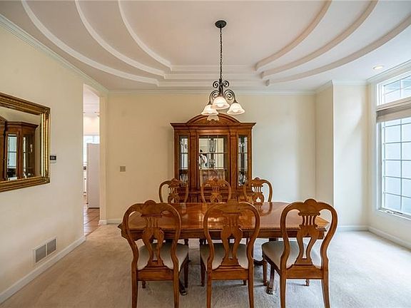 Exciting Spagnolo/Kaib custom home w/very flexible floor plan on great cul-de-sac lot. Like no other! Open floor plan boasts 1ST FLOOR MASTER, back staircase to huge den/office/exercise above garage, 10' ceilings on 1st floor, tray ceilings in Dining room & Master, vaulted ceilings in Family Room, master bath, bedroom 1 & den. Beautiful crown molding Large rooms & fabulous closet space. Fireplace, wall of windows & access to deck enhance Family Room. Opens to center island kitchen. Walk-out lower level features large game room, walk-behind wet bar, exercise room, full bath & 4th bedroom (no window). Oversized newer LOW-MAINTENANCE deck w/retractable awning w/ views to wonderful yard w/treeline privacy. Treesdale community includes swimming, tennis, basketball, ball fields, walking trails, community center, workout facilities & more. Wonderful amenities offer resort lifestyle. Minutes to Cranberry & Wexford shopping, restaurants, I79, PA turnpike, UPMC Lemieux Ice Center & so much more!