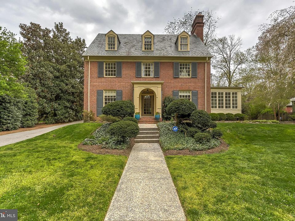 Elegant all brick 6 Bedroom, 3/2 Bath center hall Colonial home on quiet tree-lined street. Beautiful entry portico leads to a gracious Foyer with classic staircase. formal Living Room with fireplace and 2 sets of French doors to Sunroom. Formal Dining Room. Updated eat-in Kitchen with granite and stainless steel appliances. Master Bedroom with Bath plus 3 additional large Bedrooms and Hall Bath on the 2nd Floor. 2 Bedrooms and Hall Bath comprise the 3rd Floor. Lower Level Family Room and Laundry. Detached Garage, brick Patio and seating walls, nice back yard.