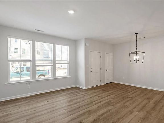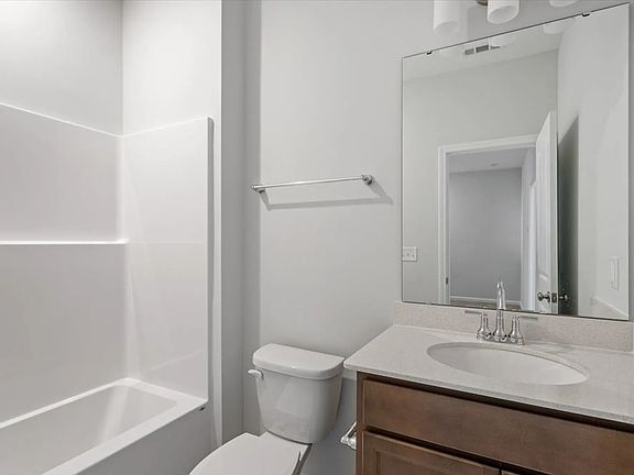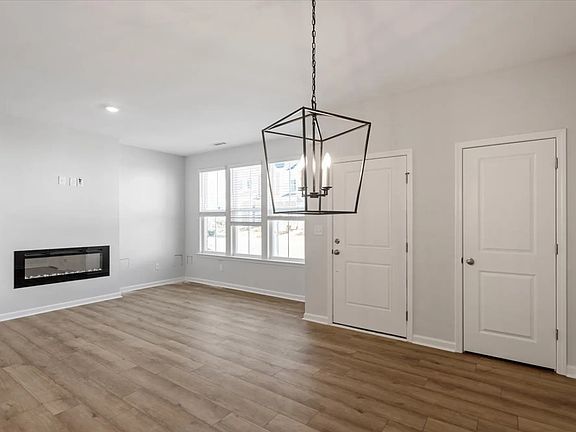 This elegantly designed two-story townhome features a rear-entry two-car garage and an open-concept layout. The great room includes a modern electric fireplace, creating a warm ambiance. The L-shaped kitchen is enhanced by burlap cabinetry, quartz countertops, and a stylish white subway tile backsplash. Adjacent to the kitchen are a powder room and a spacious storage closet for added convenience. The upper level includes three well-proportioned bedrooms. The expansive primary suite features dual walk-in closets, dual vanities, and a sizable walk-in tile shower. Two secondary bedrooms and an additional full bathroom are located on the opposite side, along with a versatile loft area and a laundry closet, optimizing space and functionality.