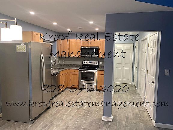 Large one bedroom condo with loft/office in Cimmaron in South Asheville. Open floor plan with gas fireplace in living room, dining room, kitchen with stove, fridge, microwave, dishwasher and disposal, remodeled full bathroom and a remodeled half bath, new washer/dryer in place, single car garage, front porch and back deck. Community pool and club house. Yard maintenance, water, sewer and trash included. Will consider pets. $1725 per month. Application, lease and deposit. Kropf Real Estate Management Company Inc. Security deposit is one month's rent based on clean credit report, background check and references.