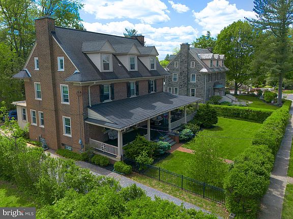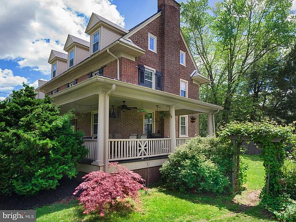 Historic Charm Meets Modern Comfort in the Heart of Ardmore. Just steps from Suburban Square and the Ardmore train, this grand 1910 brick colonial offers a perfect blend of historic charm and modern comfort. The property backs up to Packer Park, a hidden gem known only to locals, providing a semi-private, natural retreat for dog walks, gardening, and outdoor gatherings, with direct access through a private gate. At the heart of this home is the sweeping wrap-around porch, often referred to by neighbors as the “house with the amazing porch.” Perfect for summer evenings or rainy-day conversations, this spacious, covered retreat sets the tone for the welcoming atmosphere that awaits inside. Step through the stately grand foyer, where 9-ft ceilings, classic moldings, and exquisite millwork make a striking first impression. Oversized, deep-silled windows and 4 beautiful fireplaces create a warm, inviting atmosphere throughout, while original architectural details evoke the home’s historic roots. The dining room features 3 chandeliers and a marble fireplace, ideal for both intimate dinners and large gatherings. The living room is wrapped in upscale, neutral grasscloth wallpaper with a fireplace, while the light-filled family room offers custom built-in shelves, a fireplace, and a large bay window overlooking the lush backyard. The re-envisioned kitchen combines classic elegance with modern convenience, featuring Carrara marble convex tile, glass display cabinets, stainless steel appliances, granite countertops, and updated hardware and fixtures. A well-thought-out mudroom leads to a back porch, perfect for grilling and herb gardening, with a lattice-work storage unit for added convenience. Upstairs, the primary suite is a true retreat, complete with a wood-trimmed fireplace, his and her closets, and a luxurious marble bathroom with heated floors, double sinks, dual rain/wand shower heads, and a separate water closet. The hall bath on this level features a large vanity, deep, oversized claw foot soaking tub, and a linen closet. Two additional bedrooms on this level include one with board-and-batten molding and the other with a private en suite bath, for a total of 3 full baths on the 2nd floor. The 3rd floor provides 4 additional spacious rooms and a full bath, offering flexible space for guests, a private au pair living space, exercise room, or home office. The finished basement adds even more versatile space, including a large playroom, wine cellar, and ample room for storage – ideal for everything from recreation to organized living. This home has been thoughtfully upgraded to enhance both efficiency and comfort, including a new roof, tankless hot water heater, two-zone HVAC, high-efficiency gas boiler, new windows, new fencing, landscaping, and a refinished driveway. The exterior has been meticulously maintained, with fresh paint on the porches and the entire interior (2025), as well as the front porch roof (2020). An outdoor storage shed adds practical storage, while an electric outlet on the front porch provides added convenience for outdoor entertaining. Originally built for one of 3 sisters of the MacFarland estate, this home is filled with preserved historical details, from the original wine cellar shelves to the hardware on the porch once used to hitch horses. Thoughtfully renovated over the years the home’s original wood beams and brick pillars speak to a level of craftsmanship rarely seen today. Enjoy a short walk to the Suburban Square train, providing convenient access to Philadelphia and even New York City on the Paoli/Thorndale line. Walk to Maman for coffee, shop at Trader Joe’s, or catch live music and family events at Suburban Square – this home offers the perfect blend of suburban tranquility and urban convenience. Located in the award-winning Lower Merion Schools , with a choice of high schools, this home truly offers the best of both worlds – a historic retreat with all the modern conveniences.
