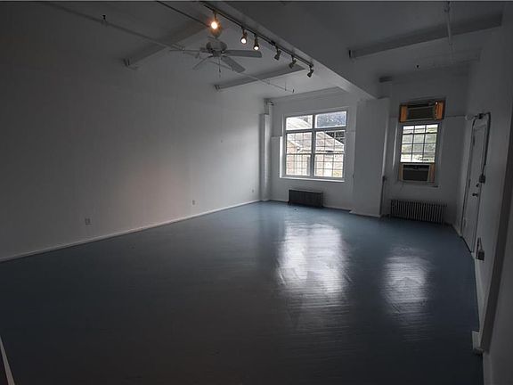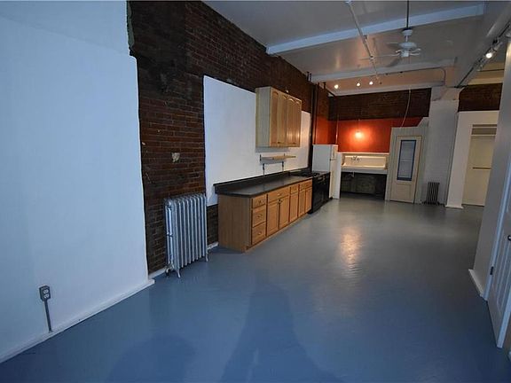 Studio style loft apartment. This converted 19th Century warehouse has been converted into artists lofts and live-workspace. This first floor apartment is open concept living room, dining room, and kitchen. Details include original painted maple floors, exposed brick, high ceilings. The bedroom is partitioned off to create private sleeping quarters. Washer, dryer are shared in a common hallway with one other apartment. Bright open spaces, a very unique living location one block from Centre Square Historic District!