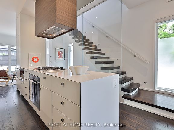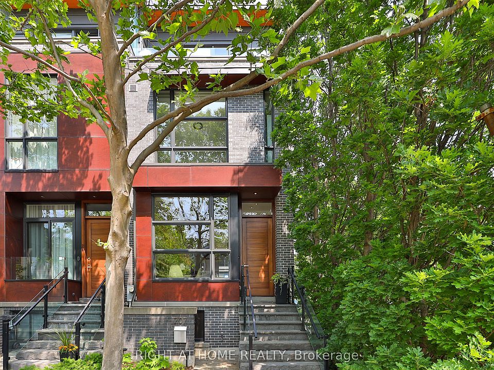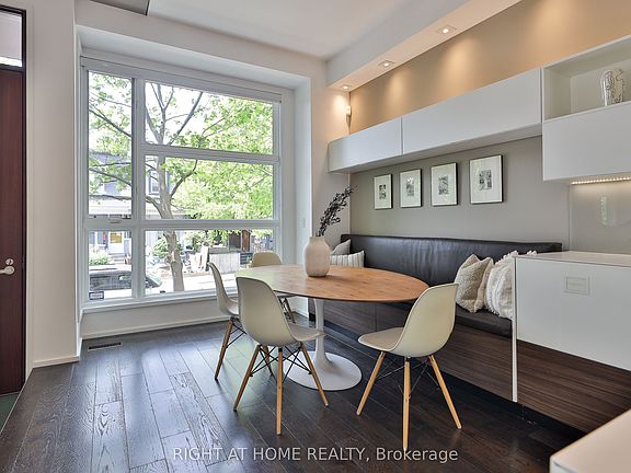 A wider and true end townhome in Trinity Bellwoods - uniquely positioned with rare south-facing windows - ideal for those craving great space and tremendous sunlight. This freehold townhome is defined by a great floorplan, leafy views, a clean modern interior, and a seamless layout ideal for both daily living and superb entertaining. Ten-foot ceilings on the main level frame an expansive chefs kitchen with a generous dining room and a refined living space with custom gas fireplace, built-ins, and walkout to a private urban garden with gas and water connections. Upstairs, you'll find three bedrooms including a remarkable full-floor primary suite with walk-in closet, spa-like ensuite with soaker tub, and a private terrace with quiet views over Trinity Bellwoods. 2nd floor laundry for added convenience. The lower level offers a flexible family room / den / home office, powder room, and direct access to a secure and oversized underground garage. A rare end home in a thoughtfully designed community, just moments to College, Dundas West, Queen West and the park.