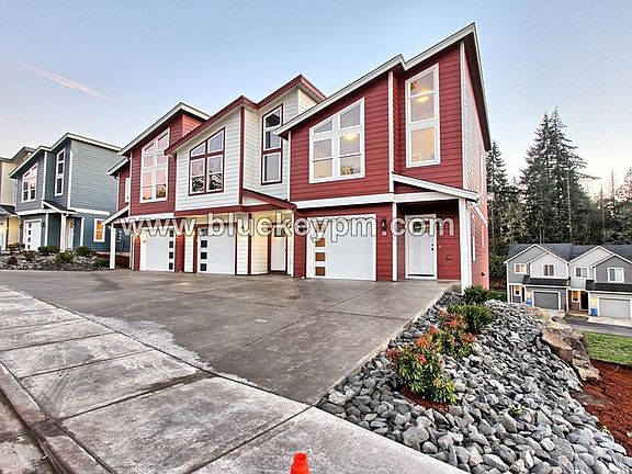 BRAND NEW JUST BUILT AVAILABLE FEBRUARY 1st ! Gorgeous new townhome on Cloverdale Road in Kalama waiting for you! 3 bedrooms, 2.5 bathrooms, 1 car attached garage, convenience washer and dryer in unit, access to RV parking and a shared yard. This home welcomes one pet with 35 lbs max weight. You will love the open floor plan with easy care floors throughout the entire home and vaulted bedroom ceilings. It has a bright kitchen with eatery island, stainless steel appliances, plenty of cabinets for storage and counter space for all your culinary adventures and entertaining. The family room is large with a mini split, window and a slider to the deck. All of the bedrooms and the laundry room are on second floor. The primary bedroom has vaulted ceilings, walk in closet and bathroom with tub/shower combo. One pet is welcome to 35lbs max weight. $800 refundable pet deposit. Call Blue Key Property Management, Inc. $2095 Rent; $2095 Security deposit, $350 non refundable fee, $55 non refundable screening fee per adult age 18 and older. $800 additional refundable deposit per pet if owners allow pets. Renter's insurance required. Blue Key Property Management, Inc. licensed in WA and OR. 207 Cloverdale Road Unit A, Kalama, WA 98625