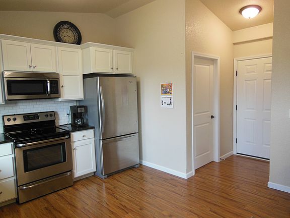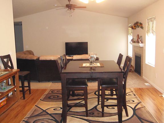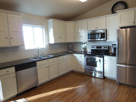 Beautiful open-floor plan home with cathedral ceiling, large spacious rooms, granite countertops, hardwood flooring, stainless steel appliances, neutral colors throughout, 2 stall attached garage, deck with natural gas hook-up for grill, walk-out basement with sliders and egress window ready to be finished, partially landscaped yard along with sidewalk to nearby playground in a nice quiet neighborhood. Also located near the recreation center and college. 3% commission paid to Buyer's agent at closing.