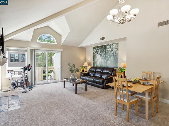 Welcome home to this top floor condo with extraordinary upgrades that make it truly stand out above the rest! Nestled among gorgeous greenery in a gated community, this corner unit with coveted vaulted ceilings, extensive storage, and a peaceful neighborhood is the perfect place to call home. Step inside your spacious living room with abundant natural light. Cook, entertain, and admire the view of Mt. Diablo from your new kitchen featuring granite counter tops and under cabinet lighting. The luxurious primary suite hosts two large closets and an en suite bathroom. An additional bedroom and updated bathroom await you at the other end of the hallway. Step out onto the private balcony or simply look in any direction out of the newer, double pane windows to views of stunning nature. This unit occupies the corner garage with a bump out for storage, plus additional parking conveniently located just outside of the unit. Copper Ridge is a spectacular neighborhood with HOA amenities including tennis courts, pools, fitness center, clubhouse and walking paths. This condo is within a top-rated school district, adjacent to Canyon Lakes Golf Course, and located just minutes away from the freeway. San Ramon boasts popular shops and restaurants at Bishop Ranch City Center, hiking trails, & more!