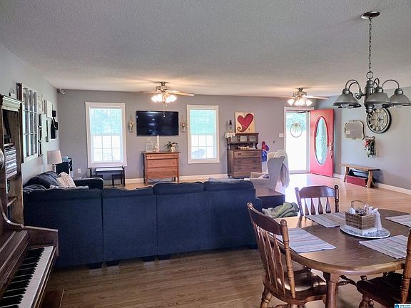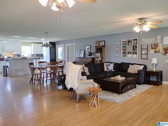 Beautiful home on 3+/- acres in a great location close to Woodland and Wedowee. Large covered front porch and open rear deck. 3 bedrooms, 2 full baths, 2 half baths, and 2322 sq ft of living space upstairs. The home features an open floorplan with a large spacious living room, dining area, and kitchen with an island and breakfast bar. The enormous master bedroom leads to the master bath. Large walk-in closet with two entrances and tons of space. Two more bedrooms separated by Jack and Jill style bathroom for the kids. Large laundry room, lots of storage space throughout the home. Finished basement with family room and half bath, and enclosed garages on either side. Outside is a 32x34 shop with concrete floors, insulation, electricity, heat, and water. Some fencing on the property will make it a great mini-farm!