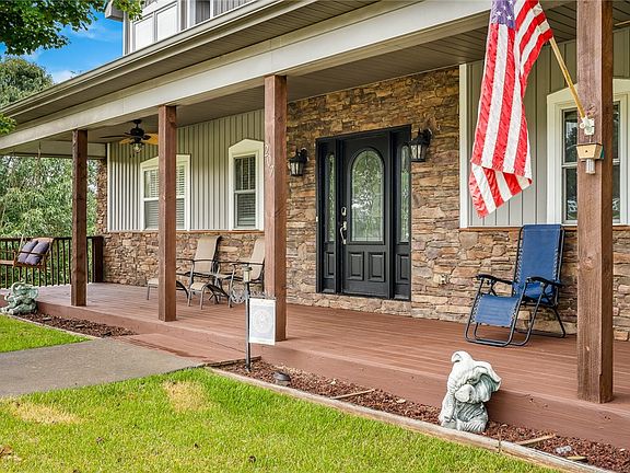 It's time for a ride, hop to 207 Crestridge Drive! This custom built home sits on more than an acre and overlooks the woods. The beautiful covered front porch was made for rocking chairs, sunrises and slow conversations. With true hardwood floors throughout the home that gleam with natural light from walls of windows, you'll relax into the inviting space. The stained tongue and groove vaulted ceiling in the living room will capture your heart. Custom built-ins create opportunity for serving, specialty decor and a variety of other uses. The two way gas fireplace joins the living room and dining area which is adjacent to the oversized kitchen - you will not lack for space in this dream kitchen! The walk-in pantry reveals custom shelving and extensive storage capacity for the organized home chef. Your meal prep views will be enjoyable, and you can even enjoy a break off the covered porch or open upper level deck. Quick access to the mud room for laundry and storage is ideal and also provides access to the vaulted ceiling screened porch, which also features a fireplace with stacked stone fireplace and hearth. This level of the home offers a half bath for guests as well as the Primary Bedroom and en suite, which offers dual walk -in closets, two separate vanities, a private water closet, a soaking tub and a walk-in shower. The upper level has an oversized second living room in the loft as well as two bedrooms that share a full bathroom and a second Primary bedroom, complete with an ensuite. The basement level of the home has an incredible den with gas fireplace, kitchenette, two more bedrooms, a guest bath and an oversized mechanical room with space for storage. There's also access to the covered patio and stairs to the backyard and firepit. The roof was replaced in August of 2023 and offers a transferable warranty as well! Close to shopping with the "feel" of being remote - truly the best of both worlds!