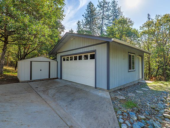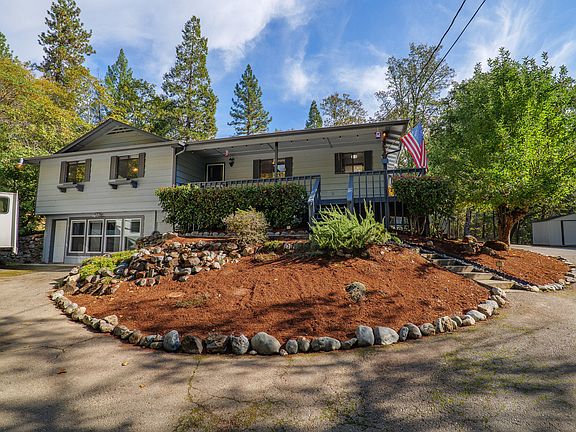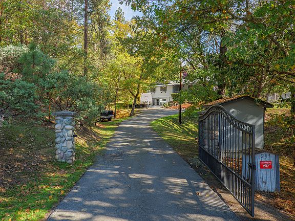 Country Setting on 1.57 acres. The Gated entrance and paved driveway are just the beginning of the features for this property. Abundant windows make for a bright and light home. 4 bdrm 2 bath home on 1.57 acres. Cozy Living Rm with certified wood stove and surround sound. Sunny dining room, & Spacious galley kitchen with Solar Upstairs features Master bedroom with private bathroom, bedroom, den or craft room and Hall Bathroom. Downstairs is a true bonus, 2 non conforming bedrooms and a mechanical room. Double car garage, Fenced backyard plus fenced garden (with water), green house & 3 fig trees & apple. 1.57 acres lightly treed with seasonal creek. This property backs up to BLM 80 acre lot. Assumable loan @6.75%