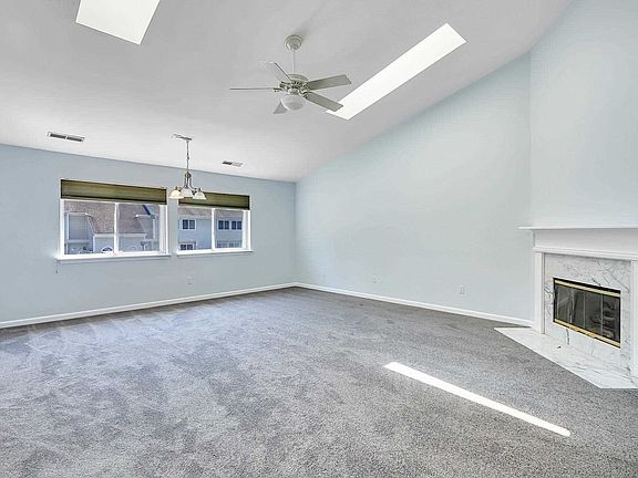 WHY RENT WHEN YOU CAN OWN THIS BRIGHT & BEAUTIFUL IN THE NEWEST PHASE OF FOX HILL! This 2 bedroom, 2 bath, upper unit Condo is immaculate & move-in ready! Offers spacious, light filled, open floor plan with vaulted ceilings, multiple skylights, beautiful marble fireplace, central air and nice large eat-in-kitchen with plenty of cabinets & counter space. Master bedroom with master bath, dressing area and slider to private deck, walk-in closet, 2nd large bedroom with slider to deck, full bath, washer/dryer in unit and great storage space in attic. Just steps away to enjoy the amenities - Tennis, pools and clubhouse! This is affordable living in a nicely maintained, close to everything complex with McCann Golf Course, trains, hospitals, colleges, shopping, restaurants just minutes away. All freshly painted, all new carpet throughout, sparkly clean top to bottom just ready & waiting for immediate occupancy! Call today!