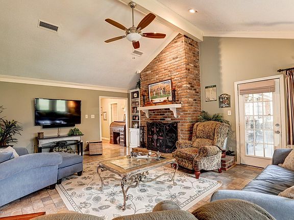 Wow-New roof and new landscaping in 2019! New central air and heat pump in 2015 (with a ten year warranty for parts and labor), along with new shed and boat cover! New water heater this year! Quiet area. Cute home with kitchen update with painted cabinets, solid granite counter tops, and even a wine cooler! Kitchen is open to breakfast and to den with a wood burning fireplace, beamed cathedral ceiling and built-ins. Lots of natural light. Solid wood doors. Formal area at front of home is currently used as an office. Both bathrooms have double sinks and slab granite counter tops. Covered patio recently renovated with new metal roof and cypress supports! Added parking behind original carport! Huge fenced yard with storage shed.