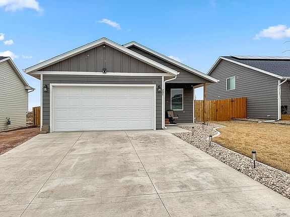 Welcome to 207 Diamond Ridge Blvd, a modern, energy-efficient home with thoughtful upgrades in a convenient location. Just minutes from I-90, shopping, downtown Rapid City, and Ellsworth AFB, this home offers easy access to everything you need. Built in 2023, this home retains the benefits of new construction, including LP Smartside siding, high-efficiency heating and cooling, 7.2kw solar panels and updated fixtures. The ranch-style layout features spacious living areas, large bedrooms, and a fully finished basement. The kitchen is designed with sleek stainless steel appliances, blending functionality with modern style. Since its original construction, upgrades have been made to enhance both indoor and outdoor living. A newly added privacy fence and a fully sodded yard create a comfortable outdoor space. The finished basement now includes a bar area with a mini-fridge, perfect for entertaining. The attached garage is equipped with a Raynor opener featuring smartphone capability for added convenience. With modern finishes, a well-planned layout, and easy access to key amenities, this home is move-in ready and offers both comfort and practicality.