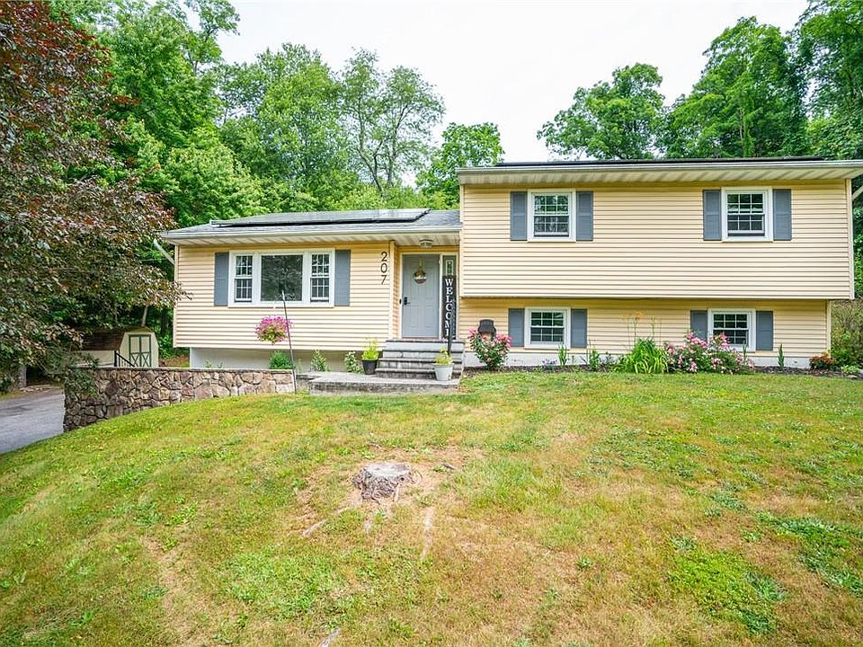 Welcome to your dream home! This stunning four bedroom, three bath split level home is situated on over 2 acres of beautifully landscaped property. As you enter the home, you are greeted by a spacious living room flooded with natural light and new Eco friendly floors. The spacious layout is perfect for entertaining, with granite countertops, new dishwasher, new refrigerator, new faucet, sliders to an oversized deck, eat in kitchen with stainless steel appliances, and ample cabinet space. The primary suite offers walk-in closet. The lower level of the home features a cozy family room perfect for relaxing, home office or home gym. The additional bedrooms are spacious and offer plenty of closet space and closet organizer. The outdoor space is equally impressive, with a large deck overlooking the expansive backyard, perfect for outdoor gatherings and entertaining. The property also features a two-car garage with new modern garage doors and ample parking space, new AC in primary bedroom, financed solar panels, outdoor video cameras, several Smart features including Nest system, smart front door and Nest Thermostat. This home is truly a must-see, offering the perfect combination of luxury and privacy, conveniently located just minutes to Taconic Parkway and shopping. Additional Information: Amenities:Storage,HeatingFuel:Oil Above Ground,ParkingFeatures:2 Car Attached,