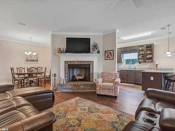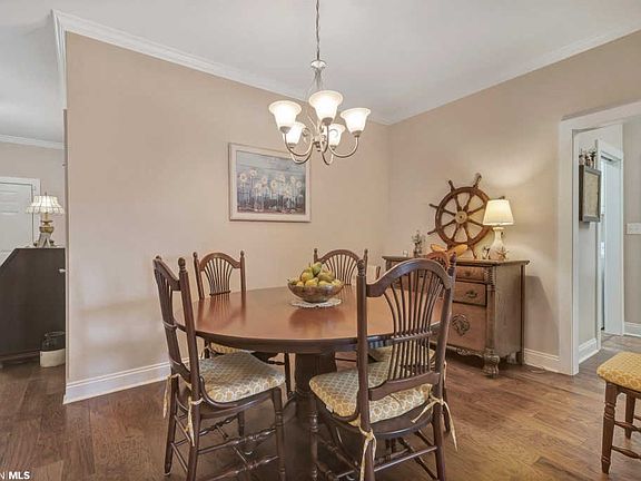 Gold Fortified Patio Home, in sought after The Villas of Quail Creek Estates. Custom features are found throughout the home: Storm door, 9ft ceilings, crown molding, 12 X 24 rear covered patio, 15 X 15 master bedroom, huge walk in closet, wooden shelving and granite counter tops through-out. The double car garage has Walk up steps to the attic and a separate storage area. The home has an Irrigation system, gutters, and a fenced in backyard. Wood flooring in the living room, foyer, kitchen, and dining areas, tile in the bathrooms, and laundry room, and carpet in the bedrooms. For a small yearly fee, you can enjoy the communityâs amenities: swimming pool, tennis courts, and a club house. The home is located in Fairhopeâs city limits, close to the townâs shopping, restaurants, and attractions. The refrigerator, washing machine, and dryer convey. Schedule a showing today, this home will not last long.