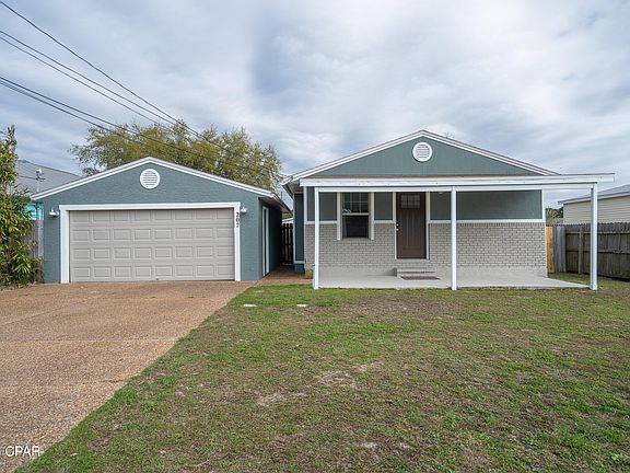 UNDER CONTRACT TAKING BACK UPS. Wonderfully maintained 3Bd/2Ba beach house located in the Bahama Heights neighborhood. Home features brand new AC (2023), newer craftsman style kitchen with white cabinetry, granite countertops, SS appliances including a gas oven, modern wide plank hand scraped hard wood floors, all newer craftsman style windows, tile floors in both bathrooms. Other features: tankless water heater, recessed lighting, gas fire place, washer/dryer hookup, spacious fenced back yard, over-sized detached two-car garage, newer roof (2018). This home is minutes to the beach, college, Pier park, navy base, Publix sports park, shopping, dining & more! Perfect as a primary residence, vacay home or as investment property. No HOA. Flood zone X, which means flood insurance is not require