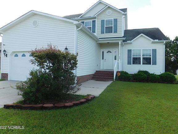 A beautiful home with wonderful space located minutes from Historic Downtown New Bern and MCAS Cherry Point in Havelock of Eastern North Carolina. The wonderful neighborhood of Forest Run is where this home sits on a quiet cul-de-sac. No City Taxes, Creekside Elementary School District and Duke Energy Utilities are a few of the things that make this neighborhood attractive. As you step into the house, you realize how well the space is utilized and the upgrades that abound. Beautiful laminate floors throughout the living areas accent well with the wood cabinets, granite countertops and stainless steel appliances. The oversize kitchen has great cabinet space and includes a center island and HUGE pantry. The open floor plan allows space to entertain, yet cozy enough to snuggle next to the gas fireplace. A very nice first floor master suite features a large walk-in closet, dual vanities and a jetted tub. The three guest rooms all have great closet space and surround a very useful loft area that would be a great office, playroom or family room. All 2.5 baths have tile floors and the oversize 2 car garage has great storage space. Relax on the back wood deck in spacious backyard or watch the kids or grandkids ride bikes in the cul-de-sac. A great buy with great space that is a must see to appreciate.