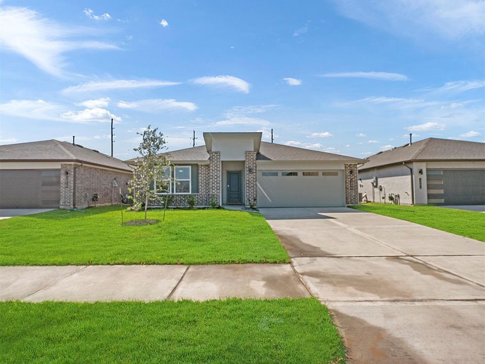 DR Horton, America's #1 Builder since 2002! This NEW CONSTRUCTION Cali Plan, their NEWEST Modern design offers 4 spacious bedrooms and 2 bathrooms, covered patio and 2-car garage! This open concept home has a stunning kitchen which includes quartz countertops, 42" cabinets, stainless steel appliances and a large breakfast bar. As you walk into the primary bathroom, you will see dual sinks, separate shower, garden tub (on select inventory) and a large walk-in closet! (All information provided by builder). Located in Rosharon's newest DR Horton Community known as Caldwell Ranch this gorgeous development will feature a relaxing pool, Tot Lot, Covered Pavilion with Picnic Tables, Shallow Splash area for the Kiddos, Water Slides and Soccer Fields.