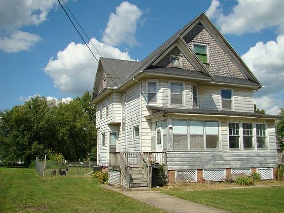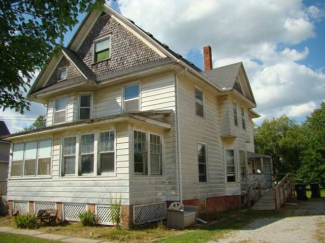 This is a grand old home with lots of charm, priced to sell as-is. If you like original wood floors along with original wood trim and 5 panel wood doors this house may be for you. The outside would benefit a ton with a paint job as well as some touching up on the original fascia and soffit. At some point windows would be beneficial, but for now most of them have storms and screens. An 80x190 sq ft lot that makes a nice sized yard. The sidewalks are in good shape and the front one leads to the enclosed front porch that has 2 sections and a screen door to seperate the two spaces. From there you enter to an impressive foyer area that showcases the beautiful woodwork as well as the grand staircase. A living room, 1/2 bathroom, dining room along with a family room all with wood floors, that lead to the walk-thru kitchen that has ample countertops, multiple cabinets and a gas oven/stove. The kitchen has access to a side entrance with a small covered landing area that leads down a ramp to the driveway. The opposite side of the kitchen has access to steps that lead to the fenced in area outside as well as to the full basement. The basement seems to be in decent shape with original brick walls. The floors are even throughout the house so the foundation is solid. A 100 amp breaker box in the basement along with the hot water heater and the gas furnace/ac that was installed new in 2002. In 2009 insulation was blown into the sidewalls and attic. As you wander up the staircase, the 1st room has very nice and shiny wood floors, but there is no closet, so this could be used as a bedroom or an office/den/study. From there you have 3 bedrooms, 2 of them do not have wood floors and 1 of them does. 2 of these rooms are very large and the 3rd is pretty average. 1 of them has a washer and dryer in the closet, and the other 2 have good closets and 1 of them a walk-in. Also on the 2nd floor is a full big bathroom with stool, large vanity, mirror and the tub/shower. This house is fit to live in now, but for someone that would love a project, it would be SO MUCH BETTER with some cosmetics and it could be a perfect match. Don't judge a book by the cover, as the siding looks rough because the color has worn off. This one deserves some attention. Call today for your showing appointment.