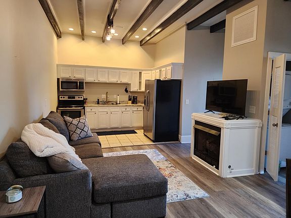 This charming apartment located on the 3rd (top) floor over Rudy Royale and Amen Street features lovely views over East Bay Street. Finishes and appliances include high beamed ceilings, exposed brick, granite countertops, stacked washer/dryer, dishwasher, and an electric fireplace. Building has an elevator. Walking distance to some of Charleston's finest restaurants, bars, parks and shopping. Water and two (2) garage parking spaces included. Tenant responsible for electricity and cable. No dogs and no smoking allowed.