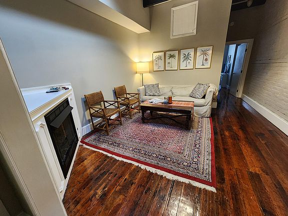 Beautiful 1BR/1BA apartment available in the beautiful French Quarter. Walk to some of Charleston's finest restaurants/bars, parks and shopping. This property features high, beamed ceilings, original hardwood floors, electric fireplace, washer/dryer, large kitchen with dishwasher, microwave, disposal, refrigerator and range. The building has an elevator and telephone entry system. - Off-street garage parking and water included. - No dogs allowed. - Up to 2 cats allowed with a $300 pet fee per pet. - This is a non-smoking property. - Total gross monthly income must be 3x rent