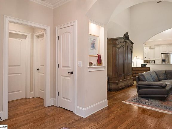 This beautiful 3 bedroom, 2 1/2 bath home is located in the heart of the Augusta Road area. Built in 2012, it has all of the comforts of a new home with the charm of an older home. As you enter the home thru the 8 foot mahogany door with seeded glass, you will notice the attention to detail. The foyer has a barreled ceiling and lighted niches which are perfect for your favorite pieces of art. The open floorplan features the living room with 18 foot ceilings and fireplace with gas logs. The kitchen has granite countertops, gas range with warming drawer, and beautiful travertine backsplash and undercounter lighting. The master suite is on the main level and features a trey ceiling and walk in closet with custom cabinetry. The exquisite master bath has heated floors, a jetted tub, separate vanities, extra large shower with dual shower heads and body sprays. There are hardwood floors throughout the main level. Upstairs you will find a loft office area, 2 bedrooms and full bath. Enjoy summer evenings on the patio overlooking the beautifully landscaped, private, fenced yard. There is a 2 car garage and extra parking pad. The garage has a laser sensor to help you park! Walking distance to restaurants and shopping. All of this for under $500,000! Home is move in ready!