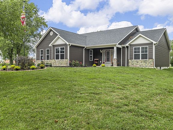 This sprawling ranch on a large lot in Jonesburg is a testimony to beauty and comfort. It has been meticulously well maintained and improved. The heart of the home showcases an open floorplan with a spacious foyer, family room, dining area and large kitchen with breakfast island. Outside the dining room door is 27 foot long patio for enjoying the outdoors. The primary bedroom suite includes a large bathroom with tiled bathtub & separate shower, dual vanities and a walk-in closet. Another bedroom is a luxurious 20'x16' and has a walk-in closet with two doors. The main floor laundry is bright and welcoming with built-in cabinetry. There is a mud room right of the laundry and the garage with built-in cabinetry and counter space, ready to suit your specific needs. You'll find lots of storage.