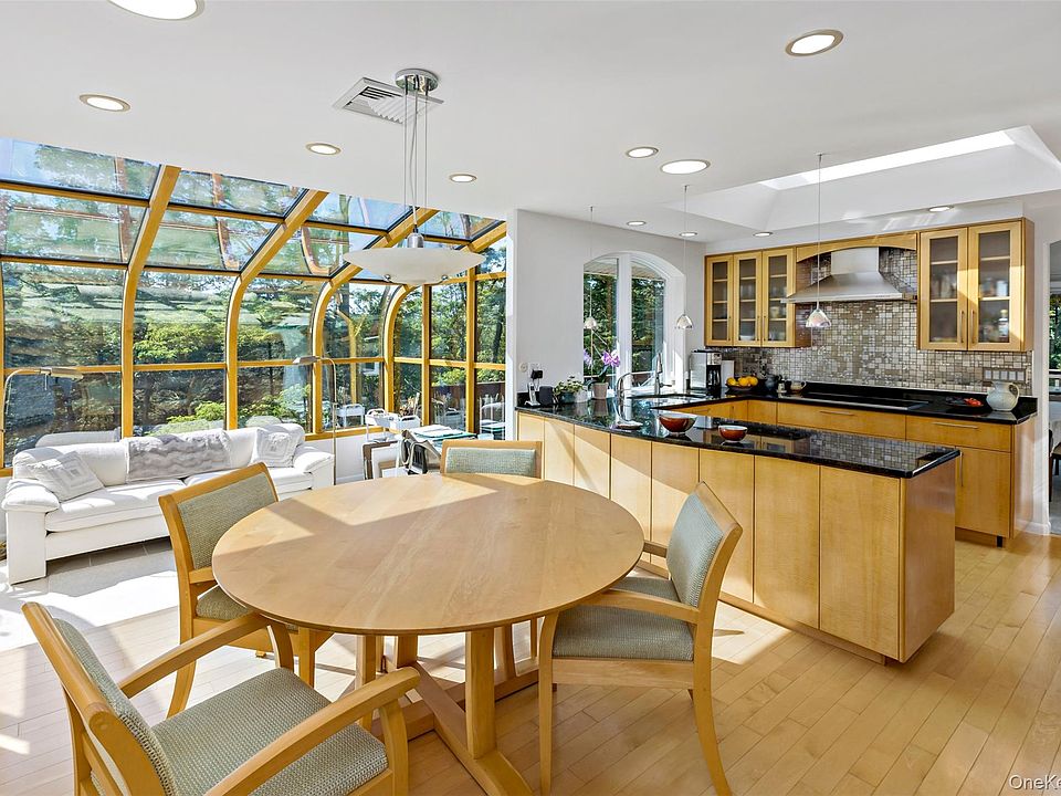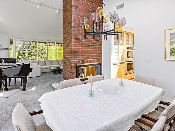 Serene Country Living with a Stylish Metro Vibe - Welcome to this one-of-a-kind country retreat—expertly updated by its original (and only) owner, and filled with thoughtful upgrades, custom craftsmanship, and refined design throughout. With over 1,100 Square Feet of Garage / Studio / workspace; in addition to the 2,698 Square Feet of living space this home is perfect for an artist, craftsperson, car enthusiast, anyone needing a little extra “working or storage” space. Bright and airy by day, this home transforms at night into a warm, inviting haven thanks to extensive built-in, multi-fixture lighting. Step inside to a spacious living room with a soaring cathedral ceiling and a stunning custom bay window that brings in an abundance of natural light. A double-sided fireplace creates a cozy ambiance, shared between the living and dining rooms—ideal for entertaining or simply relaxing by the fire. For more casual gatherings or movie nights, the sunlit family room features its own fireplace and sliding glass doors that open to the outdoors—perfect for when you want to spread out and entertain in multiple spaces. The dining room, graced with skylights and vaulted ceilings, flows seamlessly into the beautifully designed chef’s kitchen. The Kitchen was purpose created with sleek Anigre (Anegre) wood cabinets to create a bright, clean, uncluttered, and uninterrupted cabinetry; while concealing numerous creature comforts and hidden amenities such as a specially designed cabinet to house a flat-screen TV, a pull-out work/prep/utility shelf to the left of the double oven, and full-extension drawers and roll-out shelves combining efficient storage with easy access. A large skylight above the granite kitchen countertops provides plenty of illumination. Blending high-end aesthetics with practical luxury. Wake up to awe-inspiring views of Round Mountain from the main bedroom, which also boasts an ensuite bathroom complete with a radiant heated floor and skylight to welcome the morning sun. Enjoy magical sunsets from the kitchen, sunroom, or either of the two outdoor decks—your daily escape to nature. Car enthusiasts, hobbyists, or artists will appreciate the oversized attached garage (it will fit 2 SUVs with room to spare) and additional detached studio/workshop/garage — spacious enough to house a 24-foot boat, lawn tractor, vehicles, and more. Over 1,100 SqFt of Garage space in total. Surrounded by mature landscaping and towering hardwoods, this private and peaceful property offers the best of both worlds: tranquil country living just minutes from all the Hudson Valley has to offer. You are only 1.3 miles from the farm-fresh produce and famous donuts at Fishkill Farms, under six miles to shops and dining in Fishkill, and minutes from over 14,000 acres of hiking trails at Fahnestock State Park. The vibrant arts and culture scenes of Beacon and Cold Spring are just 13 and 14 miles away, respectively—and Manhattan is within easy reach via a 65-mile drive or a scenic 75-minute train ride from Beacon’s Metro-North station. Do not miss the chance to own this thoughtfully crafted home where peace, practicality, and modern elegance come together in perfect harmony.