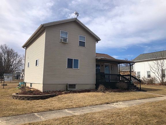 Move in ready 2 bedroom, 1 1/2 bath house with oversized heated garage and fenced in back yard. From the covered front porch you enter into the open floor plan dining room, kitchen with room for a table and living room with electric fireplace. The main floor also has a full bath, laundry/mud room with access to back deck and fenced in yard. Upstairs you will find the 2 bedrooms and half bath. Spacious yard with sidewalk to garage off of alley. Heated garage has closet and lots of shelving. Fenced in back yard 2024