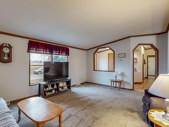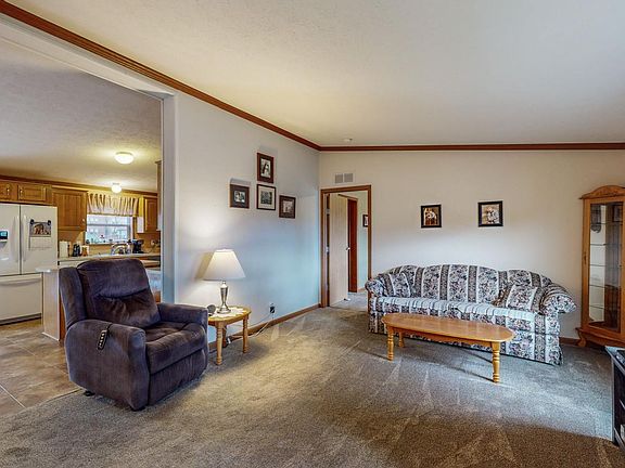 Beautiful ranch style 3 bedroom, 2 bath home with 1,680 sq. ft. all on one level. This nearly new home was custom built for the current owner and no details were left undone. Move-in condition home sits on a concrete slab with an open layout, main floor living, updated flooring, vaulted ceilings, newer appliances, walk-in pantry and city utilities. Large primary suite with private bath, double sinks and huge walk-in closet. Attached garage (26’ x 30’) is completely finished, insulated and heated. Outside enjoy the oversized corner lot (0.57 acres), stone skirting, deck, storage shed, nice landscaping and well-manicured yard. Drive a little and save a lot! Must see to appreciate!