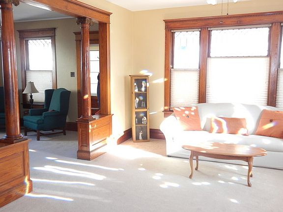 Beautiful original woodwork all over the home, including leaded windows in the living room and foyer. Lots of windows and natural light, open floor plan, NEW roof on house and garage, NEW garage door on 2 car detached garage, NEW privacy fence, NEW front porch floors and fresh paint indoors and outdoors, big back deck, Gorgeous landscaping and perennial gardens all around the house and 2 raised beds for a garden, 2 peach trees, Concrete area for dog run or storage shed. 3 HUGE bedrooms with 5 walk-in closets, possible 4th bedroom in 20% finished basement, hardwood floors throughout home, extra area to park cars on the side of the house, updated electrical throughout, Down the street from Danville Schools!