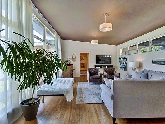 Mid-century modern homeUpdated lightingUpdated bathroomsLovely outdoor back patioStainless steel appliancesGranite countertopsMagnificent oak tree