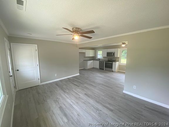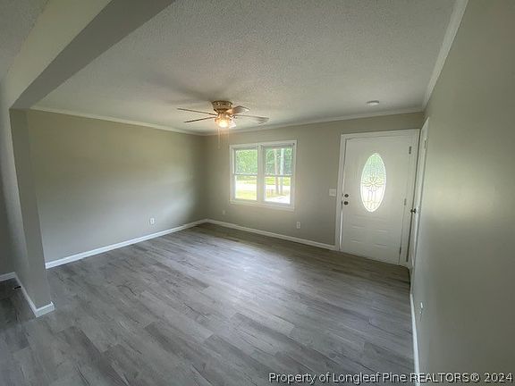 This charming 3 BR/1BA ranch is beautifully updated and move-in ready! The entire home has all new paint and new LVP flooring throughout. The very open living, dining, & kitchen areas give you plenty of space for family time and entertaining. The kitchen features new cabinets, granite counters and new stainless steel appliances. The bathroom features a new double vanity. Laundry closet. Enjoy evenings on the deck, the perfect location for your grill. There is a small attached shed and 2 other larger sheds for extra storage and all your lawn/garden tools. Plus new HVAC! This great location is convenient to local parks and amenities with an easy commute to Fayetteville, Fuquay-Varina, Sanford and Raleigh.
