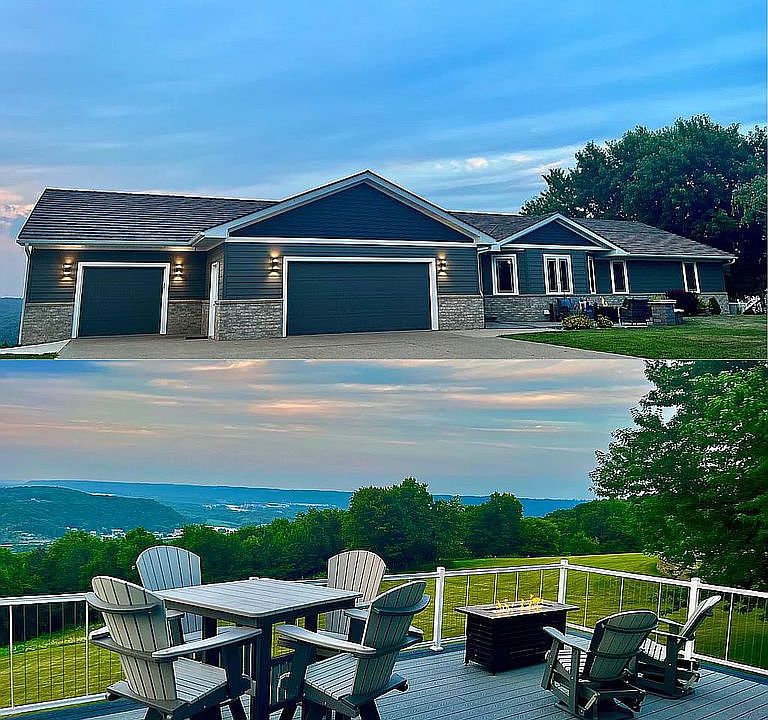 Welcome to your dream home with a panoramic view!! Breath taking sunrises and sunsets overlooking Marquette, the Mississippi River and Prairie du Chien. This captivating 3 bed, 3 bath residence spans over 5020 sq ft and sits gracefully on 1.89 acres of scenic beauty. With a 3-car attached garage, this gem offers ample space and modern comforts. Step inside to discover a renovated kitchen and a luxurious master bathroom featuring heated floors and soaker tub with heated towel rack, perfect for unwinding after a long day. The master suite boasts access the deck with breath taking views and tranquility. Enjoy the enchanting backyard with its abundance of wildlife and the changes of the seasons. Updates include smart siding, new composite deck and railing, steel shingles roof, windows and complete interior remodel with updated landscaping in December 2018. Custom wood flooring throughout the main level, custom kitchen and bathroom cabinetry. Lower level features a electric fireplace. 2 furnaces and 2 air conditioning units replaced in 2019. Tankless water heater 2020, GENERAC generator added in 2022. Security Cameras installed 2023. Custom drapes and blinds, 5 sliding glass doors with built in blinds. Don't miss out on this exquisite property, where nature and luxury seamlessly combine.