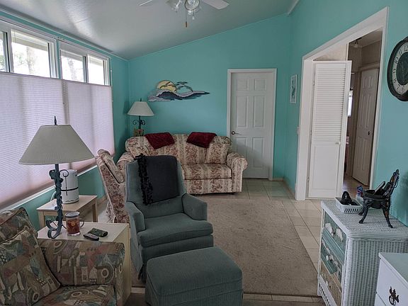 The wait is over!! Meticulously maintained 2 FULL bedroom unit at the much sought after seasonal community of Bayberry Cove. Enter thru the wonderful outside porch with newer awning, into the spacious bright and cheery unit. Marble tile thruout the entire unit makes for easy clean up after a day at the beach or lake. Full size bedroom in back of the Florida room with Queen size bed, perfect for guests. 2 sleeper sofa's for extra sleeping space. Master offers double mirrored built ins with lots of storage and Queen size bed. Great bathroom with step in shower and storage. Open FRONT kitchen with full size range with microwave above it. Full size refrigerator with ice and water on outside. Nice size dining area as well. Whole house water filtration system, tons of storage. Large shed out back. This unit is move in ready and comes with everything you need to enjoy the summer! Just bring your clothes~