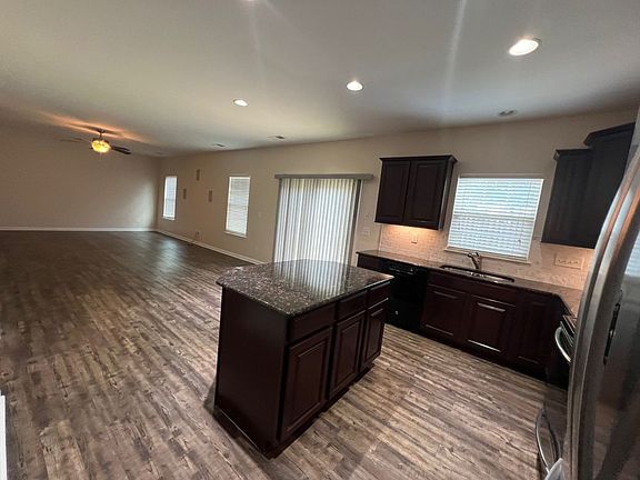 Large patioSpacious kitchenKitchen islandFenced backyardGarbage disposalCeiling fan