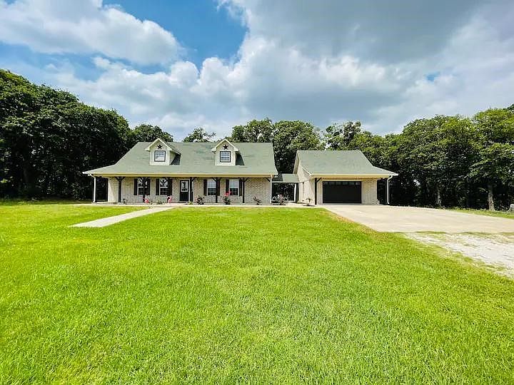 This is it. A very beautiful custom home that backs up to corp. property on Lake Ray Roberts welcomes you with a long covered front porch. Spacious living area joins the large kitchen with custom cabinets which have plenty of storage space and unique tile counter tops. On the other side of the kitchen is the second living area with built in cabinets and can double as a sunroom. Large master suite comes with a gorgeous spa tub and walk in shower. Two oversized bedrooms and full bath are located on the second floor. The 4000 sqft. shop with two baths and two overhead doors has a 20' wide bay for additional storage or workspace. This beautiful property also has a large pond with a bridge in between the shop and the house.