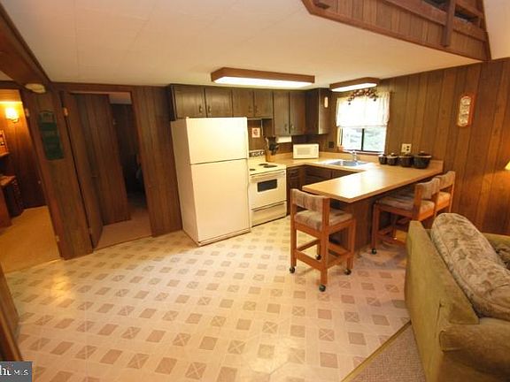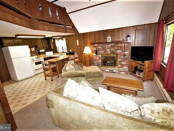 Mountain Chalet in the heart of the Poconos. This chalet has 3 bedrooms, including a large sleeping loft bedroom, and 1 bathroom. It is located in the gated, amenity-filled community of Arrowhead Lakes. A brick-faced propane fireplace is in the living room to keep you warm on cold nights. Living room has cathedral ceiling. Kitchen has an eating bar. Large sleeping loft adds extra space to this home. Front deck is great for entertaining guests all year round. Paved circle driveway means plenty of parking. Home also has an oversized crawlspace! Walking distance to Minisink Pool!